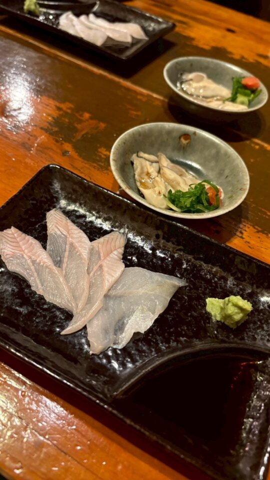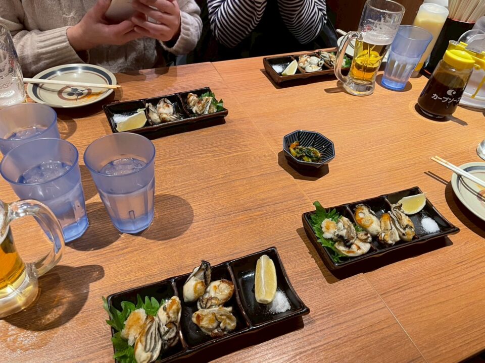 もちろん牡蠣もいただきました。塩とレモンで食べるのが美味しかったです。真ん中の小鉢は「ひろしまなキムチ」です。これまた、かつおの風味のするキムチでおもしろかったです。