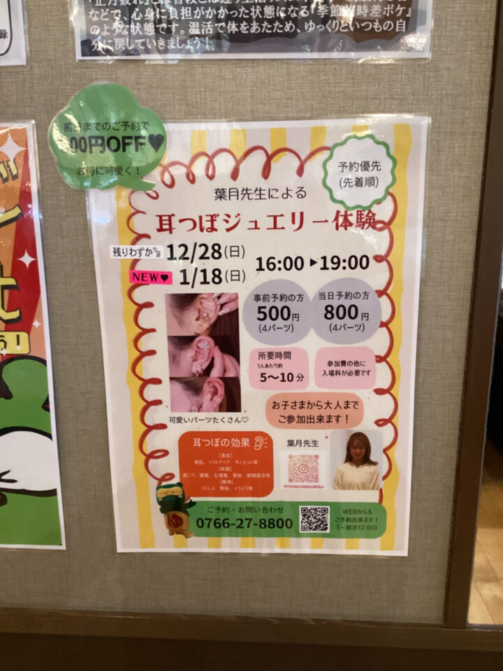 昨月から始めた【耳つぼジュエリー体験】が大人気です。